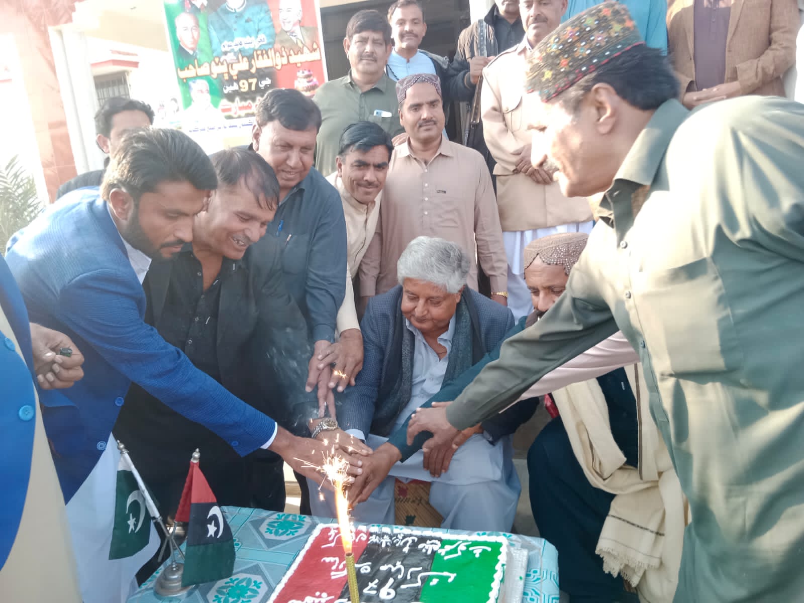 روزي خان دراني، شهزاد سومرو، حيدر ڀٽي ۽ ٻيا حاجي اسد خشڪ جي آجياڻي ۾ شريڪ